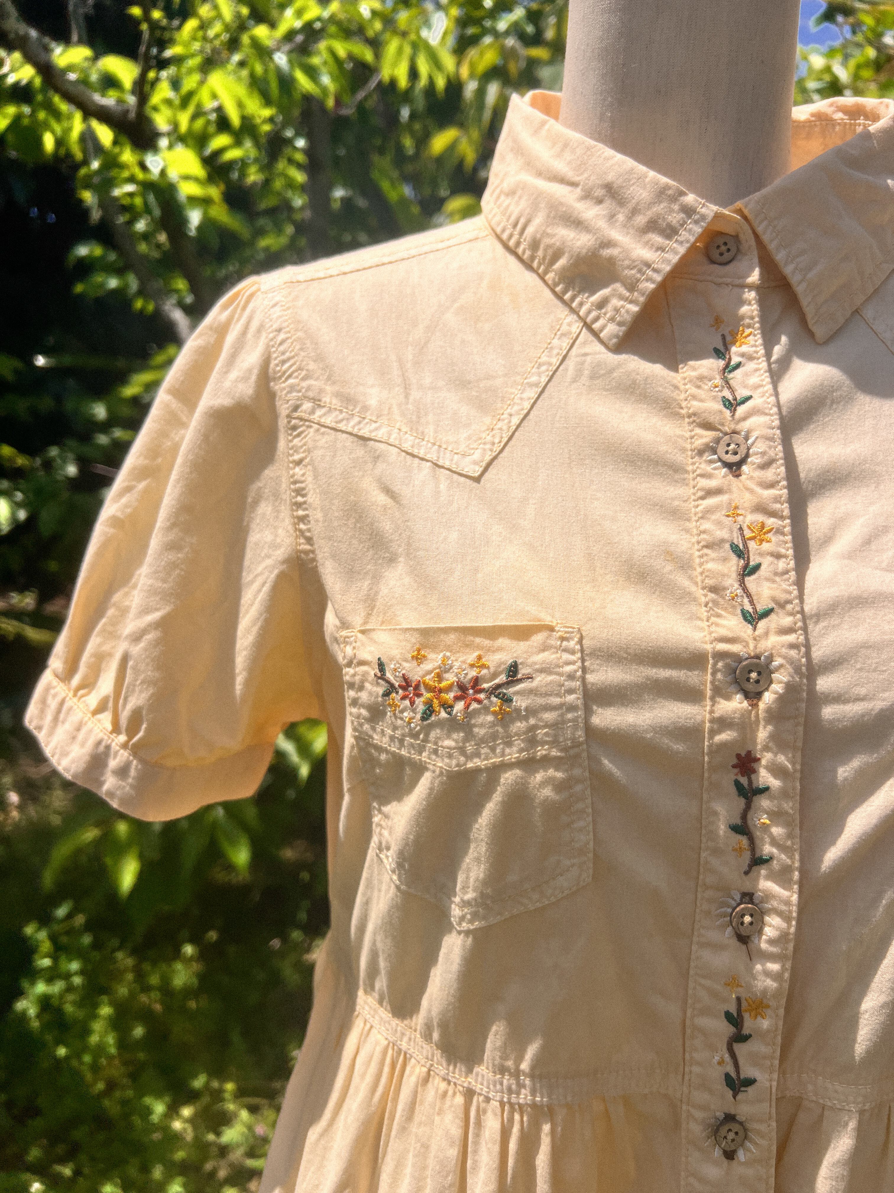 お花が肌に描かれているような刺繍がかわいいワンピース。