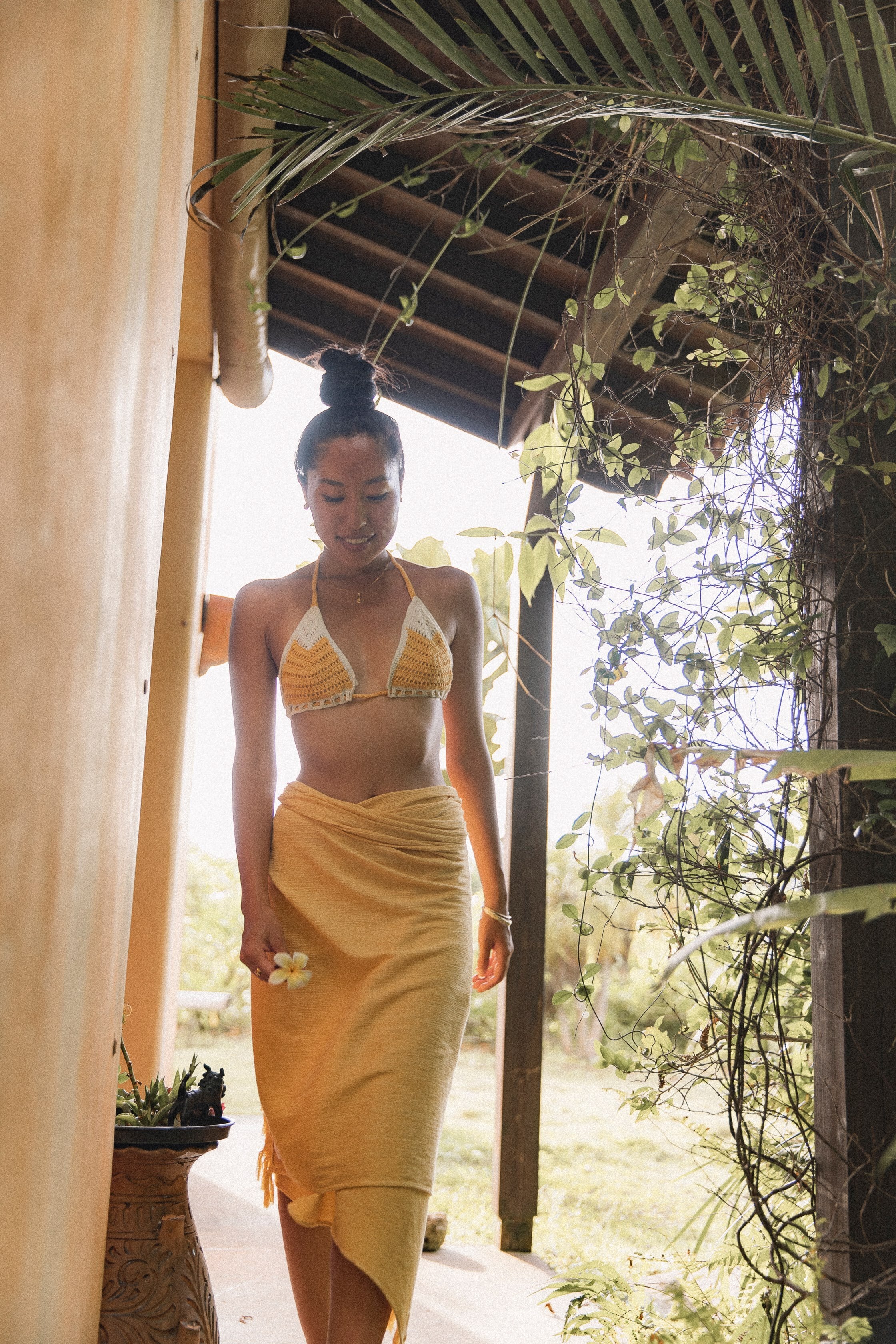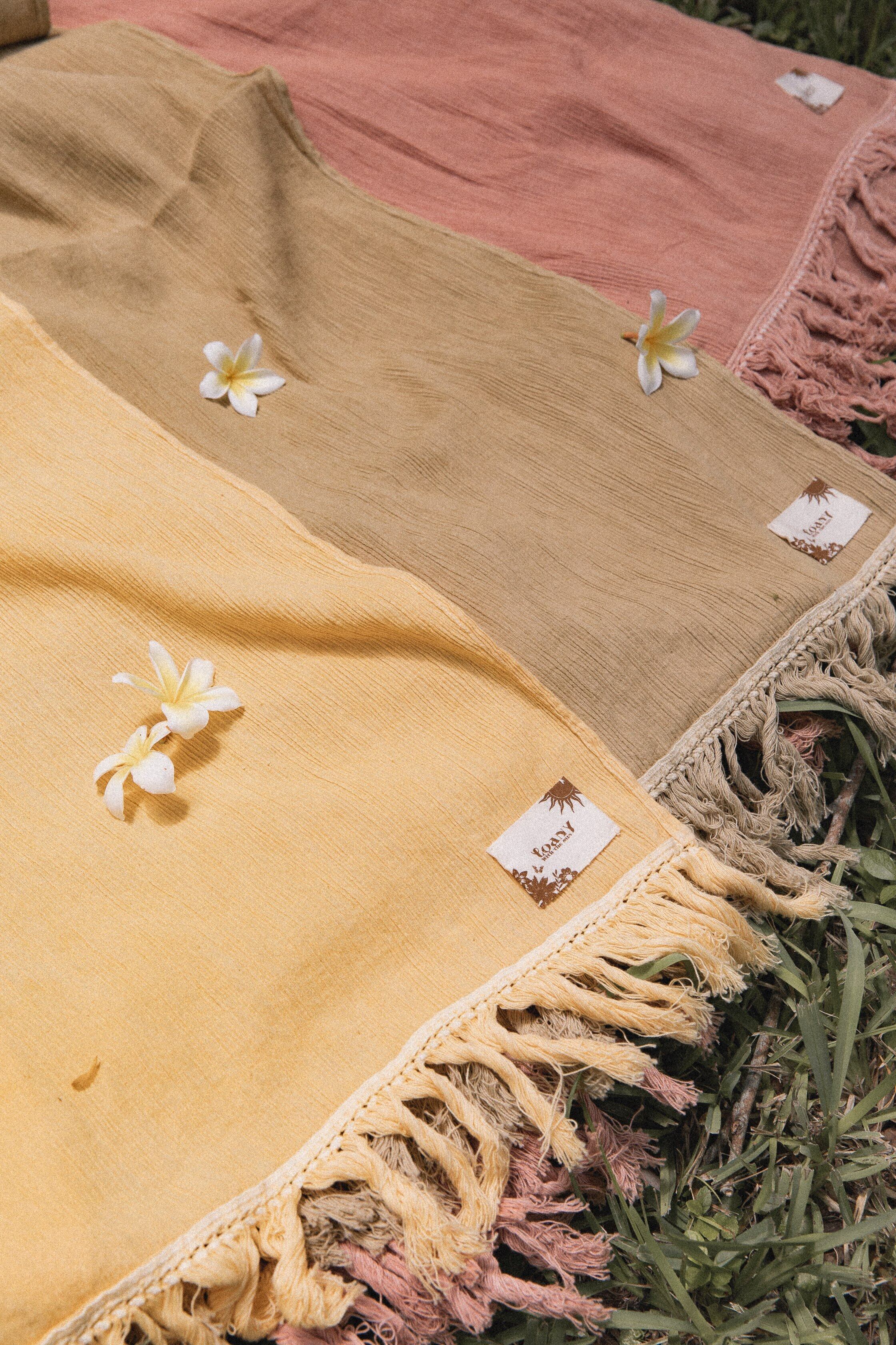 みんなのクリエイティブな心で自由に巻いて楽しんでもらいたいと願いを込めたアイテム。海でゆっくり寝転がり、 海上がりには体を拭き、サッと腰に巻くとパレオとしても1.8mと大判のため、ビーチマットして使っていただく際もはみ出すことなく心地よく寝転んでいただける大きさにこだわりました。秋や冬 にはブランケットやストールとして、ターバンとしてもアレンジしていただけます。
