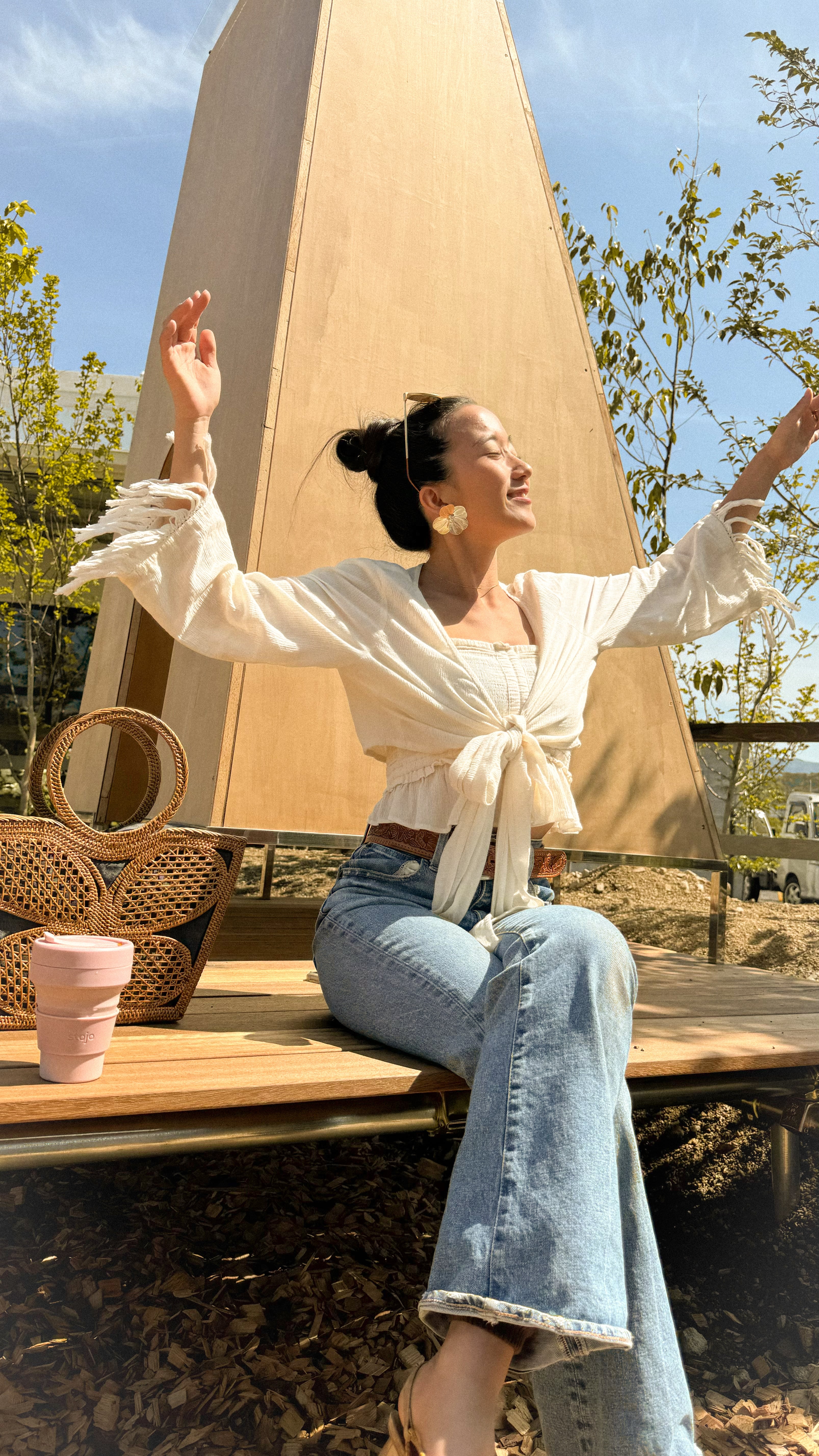 紐はフロント、バック、サイドで結んで頂けるので3WAYで着方を楽しんでいただけます。デニムを合わせてカジュアルに、海上がりにビキニの上からサラッと、ヨガウェアに合わせてセルフケアタイムに、スカートやワンピースに合わせるとフォーマルなシーンにも。